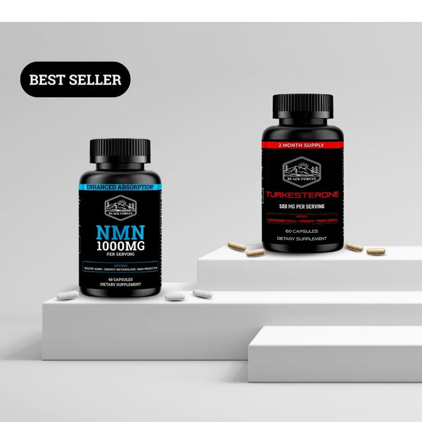 Step up your aging game with Black Forest's Anti-Aging Boost Bundle: Dive into the unmatched potency of our 95% pure Turkesterone, raising the bar in the market. Pair this with our 99% pure NMN, promoting energy production, muscle rejuvenation, and anti-aging. Together these components pave the way for a youthful and revitalize life.