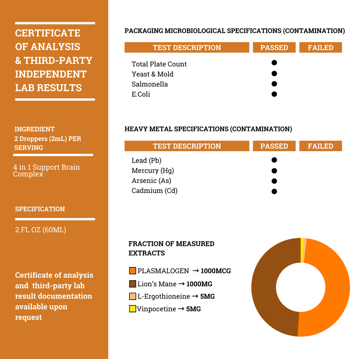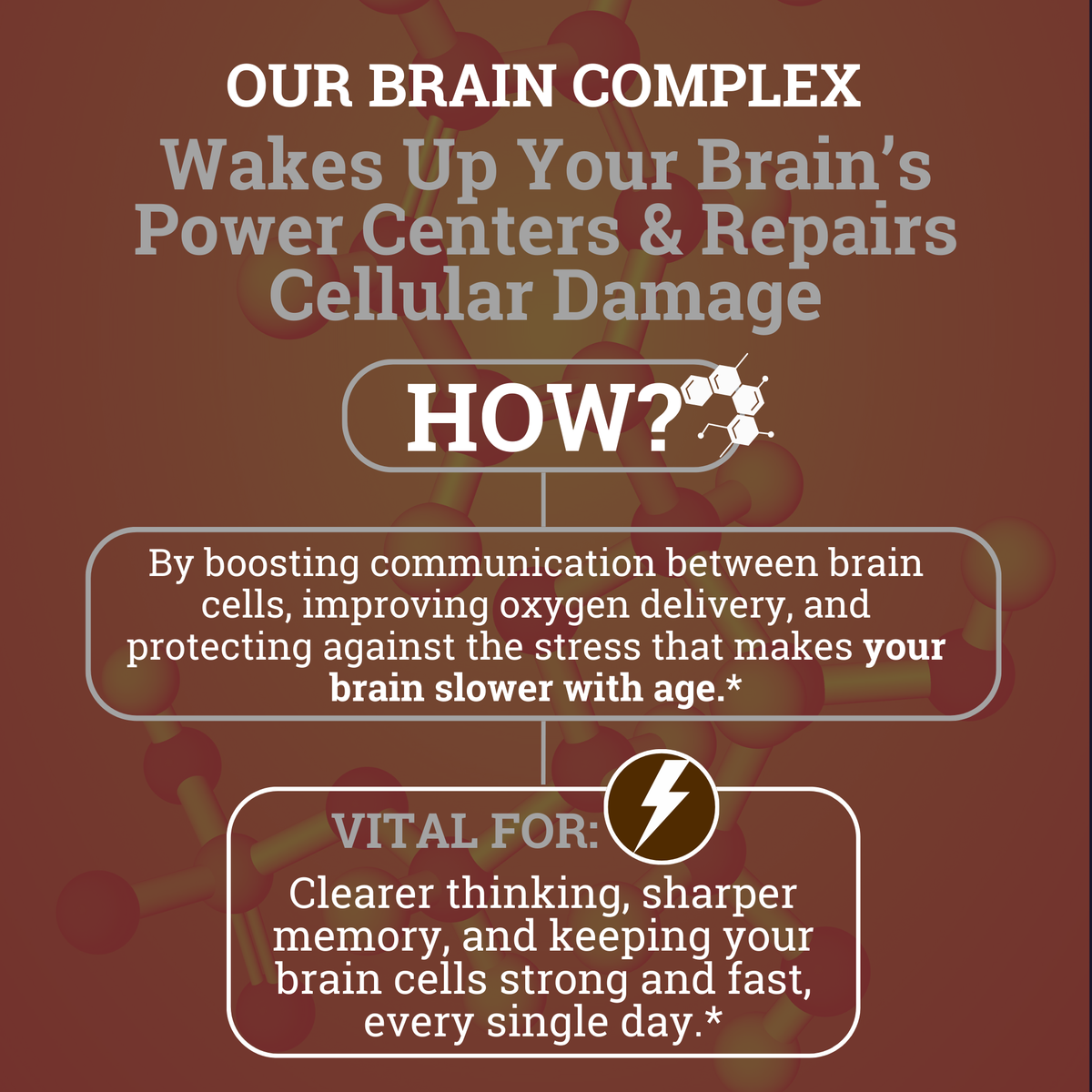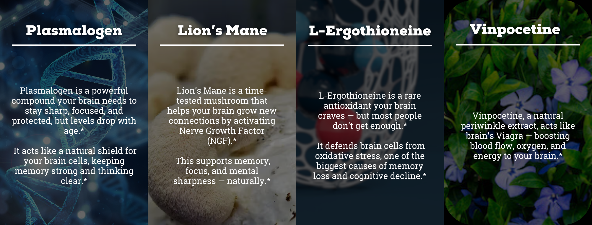 Reclaim your mind with Brain Complex, a 4-in-1 synergistic blend of scientifically proven ingredients including Plasmalogen, Lion’s Mane, L-ergothioneine, and Vinpocetine. This cutting-edge formula supports focus*, memory,* brain fog*, and long-term cognitive health*—crafted by our experts to outsmart Big Pharma’s addictive crutches with natural, lasting power.