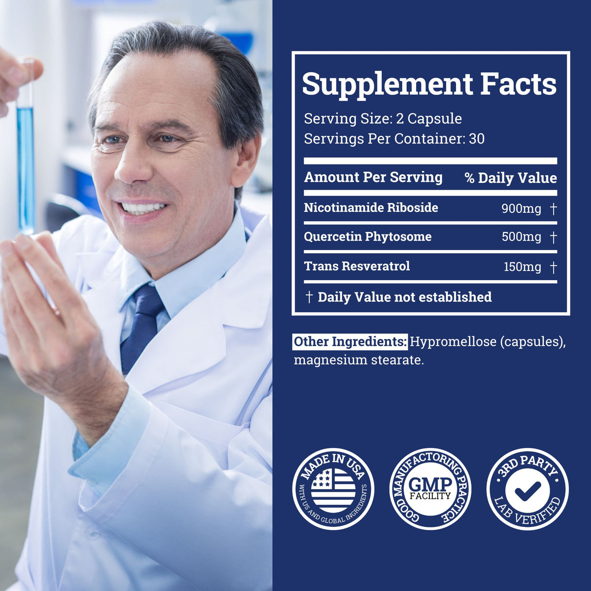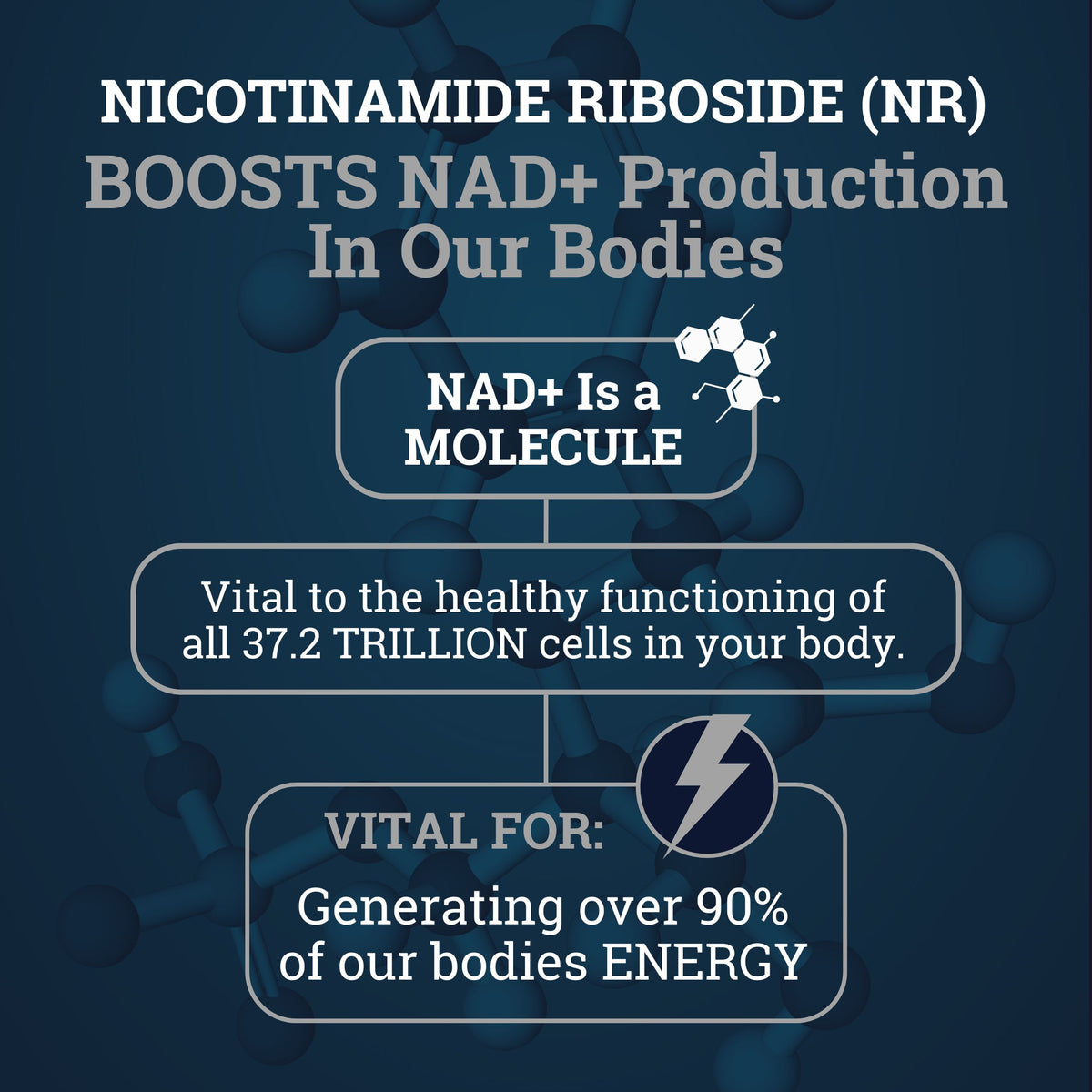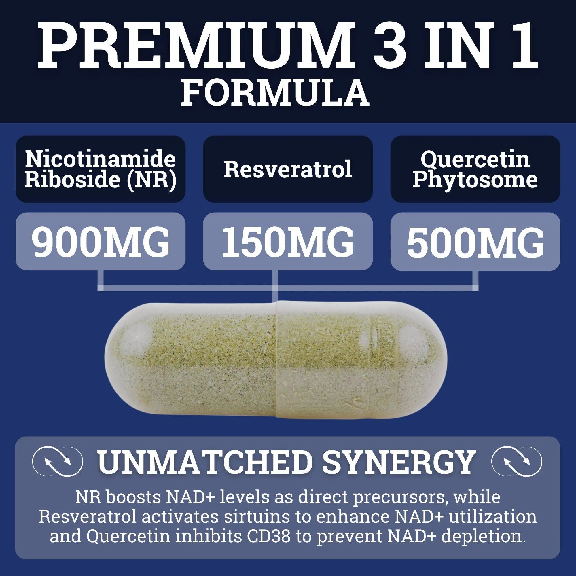 Black Forest’s Nicotinamide Riboside (NR) delivers 900mg of clinically tested NR, rapidly increasing NAD+ levels to enhance energy, brain function, and metabolic health. Paired with Quercetin Phytosome and Resveratrol, this powerful formula optimizes cellular repair*, supports healthy aging*, and boosts resilience against chronic diseases. Achieve vitality and long-term health with our premium NAD+ booster.*