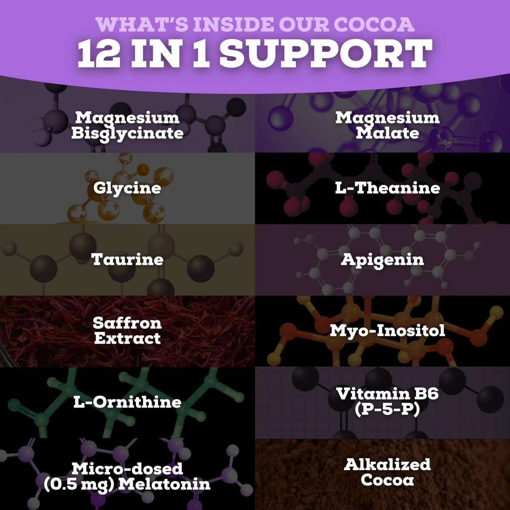 Sleepy Cocoa is the world’s first sleep formula designed to support all six core sleep repair pathways — the biological systems that determine whether sleep actually restores and rejuvenates the body, including sleep onset, deep sleep, REM sleep, stress regulation, mental calm, and natural body cooling.